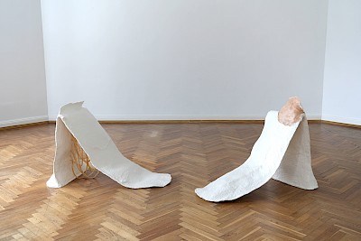 Ausgehend von Fragen nach der psychischen Beziehung zwischen Mensch und Raum: Distanzierung und Annäherung, Unwohlsein und Wohlbehagen, sowie Abneigung und Zuneigung mit und durch den Raum, entwickle ich meine raumgreifenden plastischen Arbeiten. Ich betrachte die Skulpturen als anthropomorphe Formen des menschlichen Körpers bzw. Raumes, durch die urmenschliche Eigenschaften, Emotionen und Verhaltensmerkmale sichtbar werden. In den Raum hineinwachsend, einsickernd und sich ausbreitend, werden die Begrenzungen verunklart und aufgelöst. Dabei interessiert mich der ambivalente Schwellenzustand zwischen Raum und Mensch, zwischen zwei Menschen und zwischen dem Individuum und der eigenen Psyche, Emotion und Verhalten.